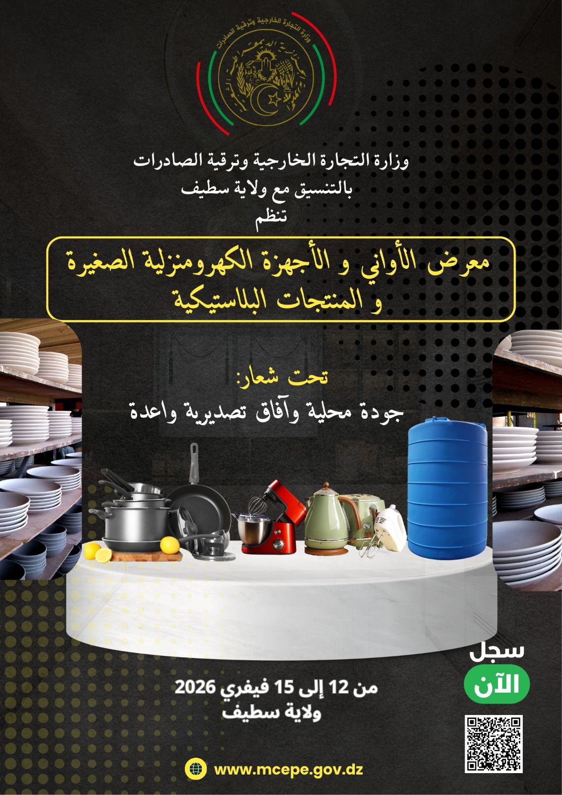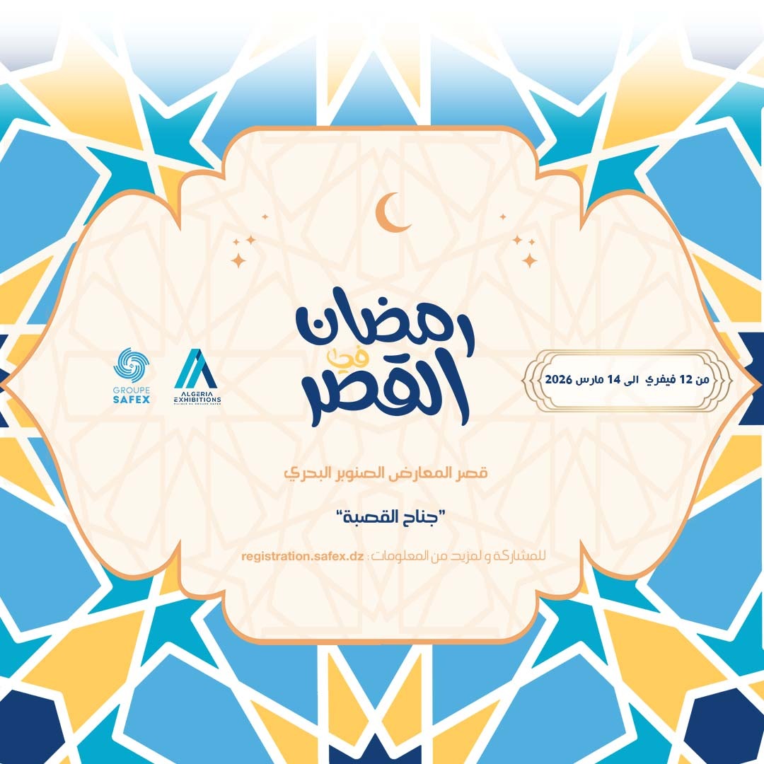 الجــزائــر : تنظيم الطبعة السادسة للمعرض التجاري رمضان في القصر بطبعته الجديدة 2026 , من 12 فيفري حتى 14 مارس 2026 ,بقصر المعارض، جناح القصبة، صافكس -الجزائر العاصمة . من…